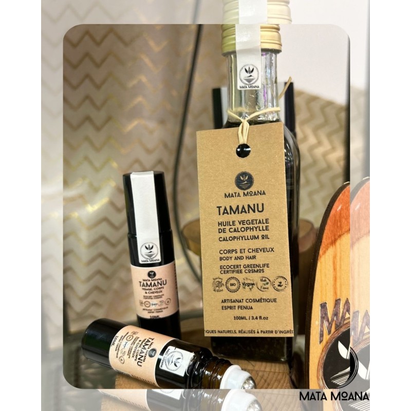 La calophylle ou Tamanu : une véritable huile médicinale utilisée depuis des millénaires en Polynésie. Cicatrisante, réparatrice, anti inflammatoire et restructurante. Elle favorise la circulation. Très utilisée chez les sportifs et les personnes souffrant d’affection de la peau comme le psoriasis, eczéma, brûlures…